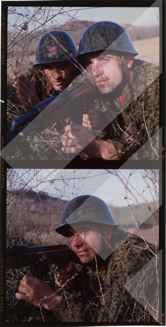 I panjohur, 1984, Ushtarë në stërvitje me veshje kamuflazhi, diapozitiv, 6 x 6 cm.