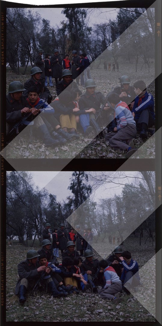 I panjohur, 1984, Pionierë dhe ushtarë në Parkun e Liqenit, Tiranë, diapozitiv, 6 x 6 cm.