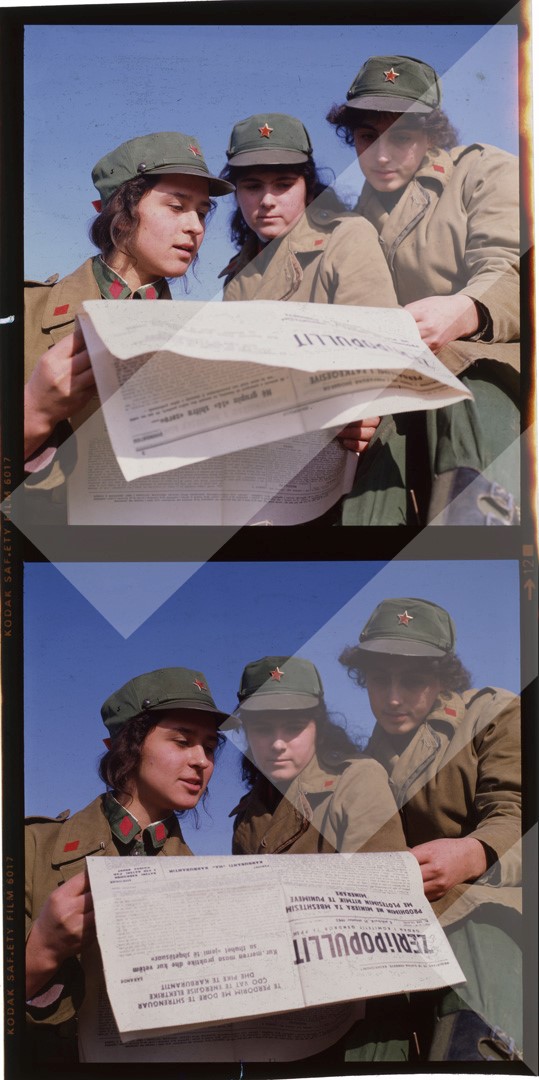 I panjohur, 1984, Ushtare duke lexuar shtypin e ditës, diapozitiv, 6 x 6 cm.