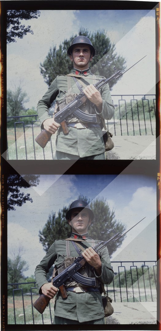 I panjohur, 1984, Ushtar në pozë, diapozitiv, 6 x 6 cm.