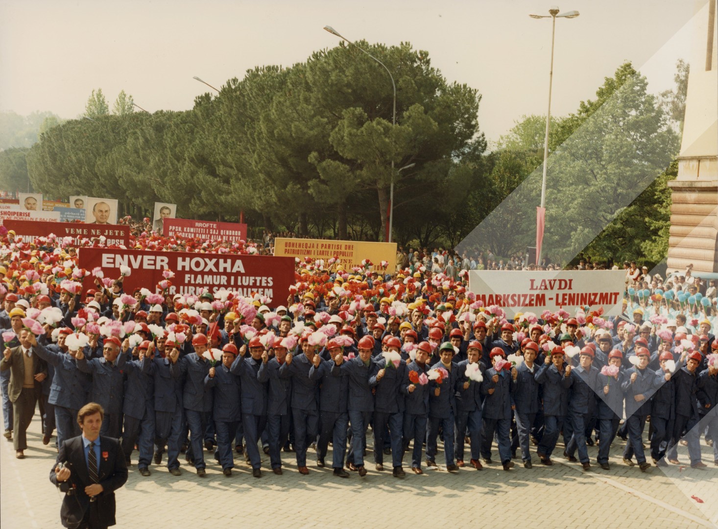 I panjohur, 1988, Parakalim i minatorëve në festën e 1 Majit, Tiranë 1988., print në letër, 18 x 24 cm.