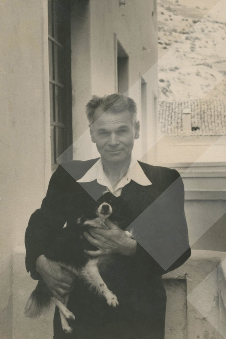 German Maliniçev, 1956,, Lasgush Poradeci me qenin e tij të parë, Lolka,, print në letër, 10 x 15 cm.