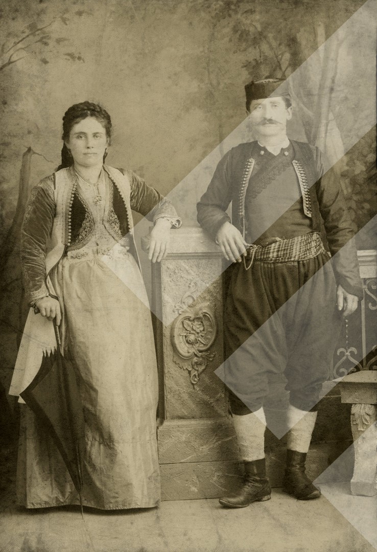 Kol Idromeno, rreth 1900, Bashkëshortë në studio, print në letër, 11 x 16.5 cm.