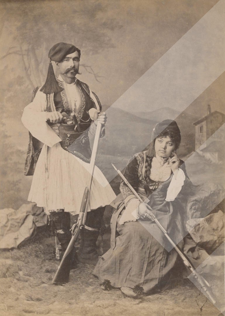 Autor i panjohur, rreth 1880-1890, Çift shqiptarësh nga Janina, print në letër, 10 x 14 cm.