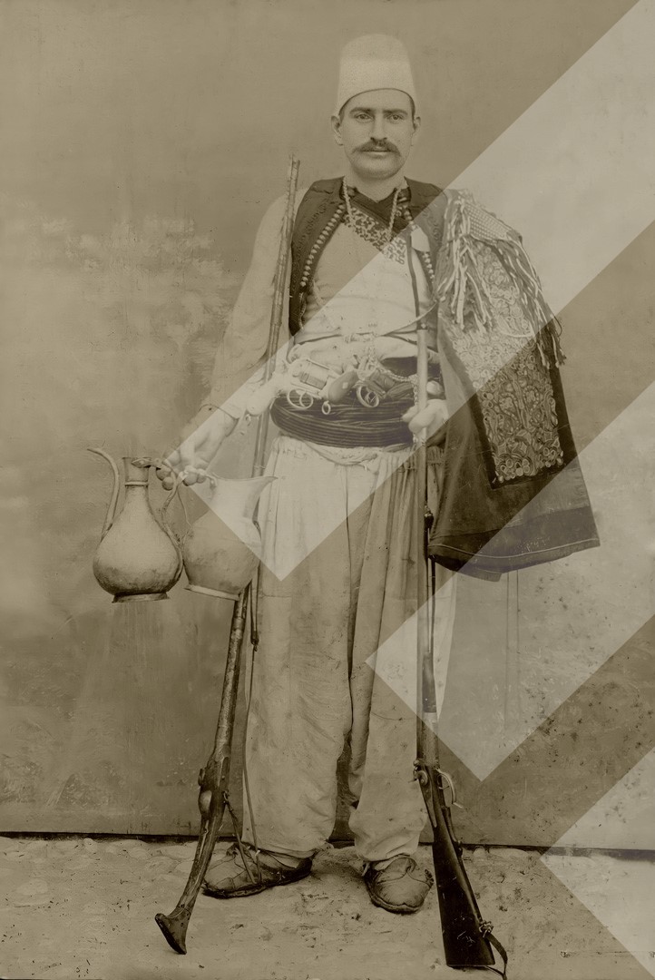 I panjohur, rreth 1895-1900, Shitës ambulant, Shkodër, print në letër, 9 x 13 cm.