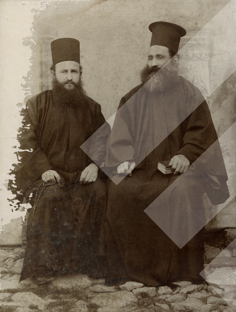 Perikli Kaçauni, rreth 1900-1906, Spiridhon M.Dunka, murg ikonograf dhe protosingjeli i Kosturit Platon Kerusnica. Dardhë, Korçë, print në letër, 12.5 x 16.5 cm.