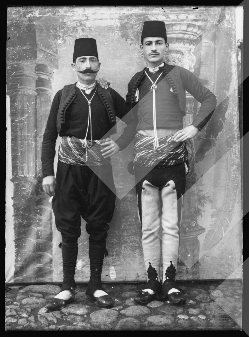 Perikli Kaçauni, rreth 1900-1910, Miq në pozë. Dardhë, Korçë, pllakë xhami, 12 x 16 cm.