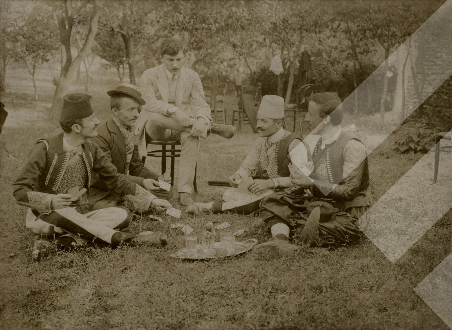 I panjohur, rreth 1910-1911, Grup miqsh duke luajtur me letra, Shkodër, print në letër, 6 x 12 cm.