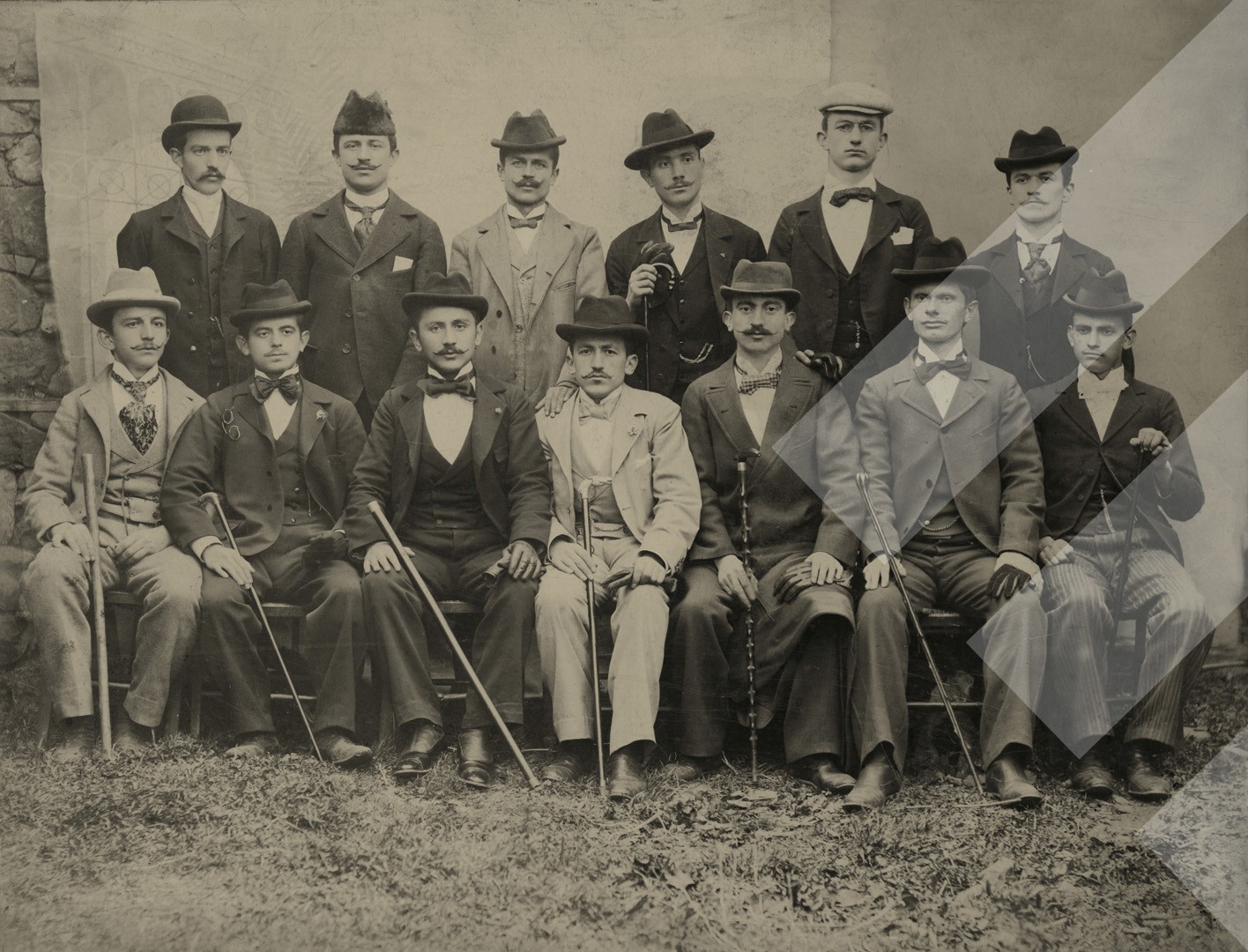 Petro Dhimitri, rreth 1898, Foto në grup, print në letër, 19.5 x 25.5 cm.