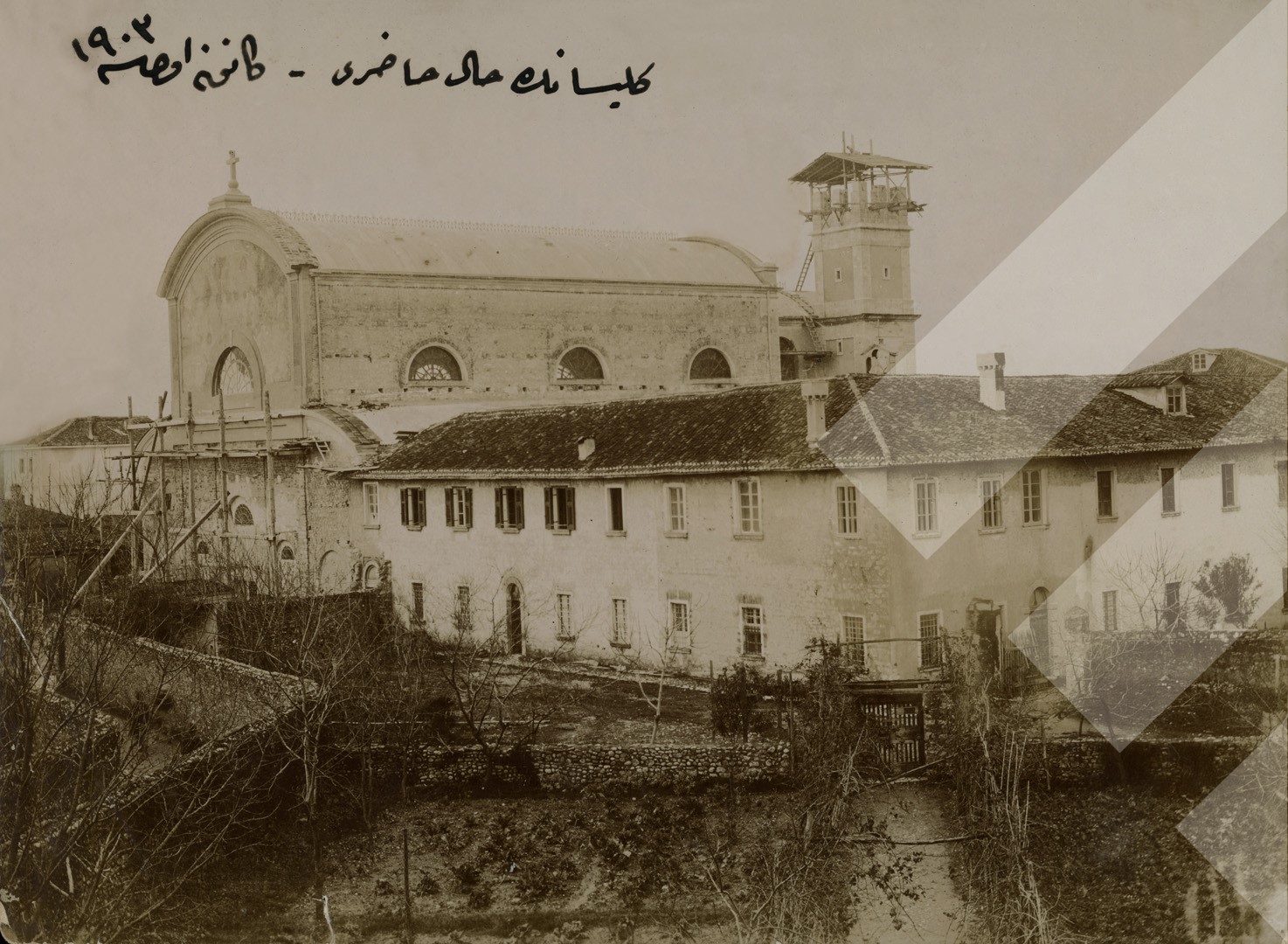 I panjohur, 1903, Kisha Françeskane gjatë ndërtimit në Shkodër. (Mbishkrimi në osmanisht: Pamja aktuale e Kishës, Dhjetor 1903), print në letër, 12.5 x 17 cm.