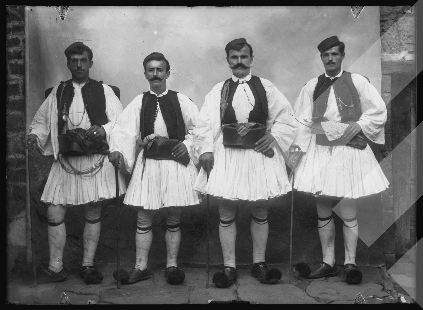 Perikli Kaçauni, rreth 1900-1910, Burra me veshje dardhare. Dardhë, Korçë, pllakë xhami, 12 x 16 cm.