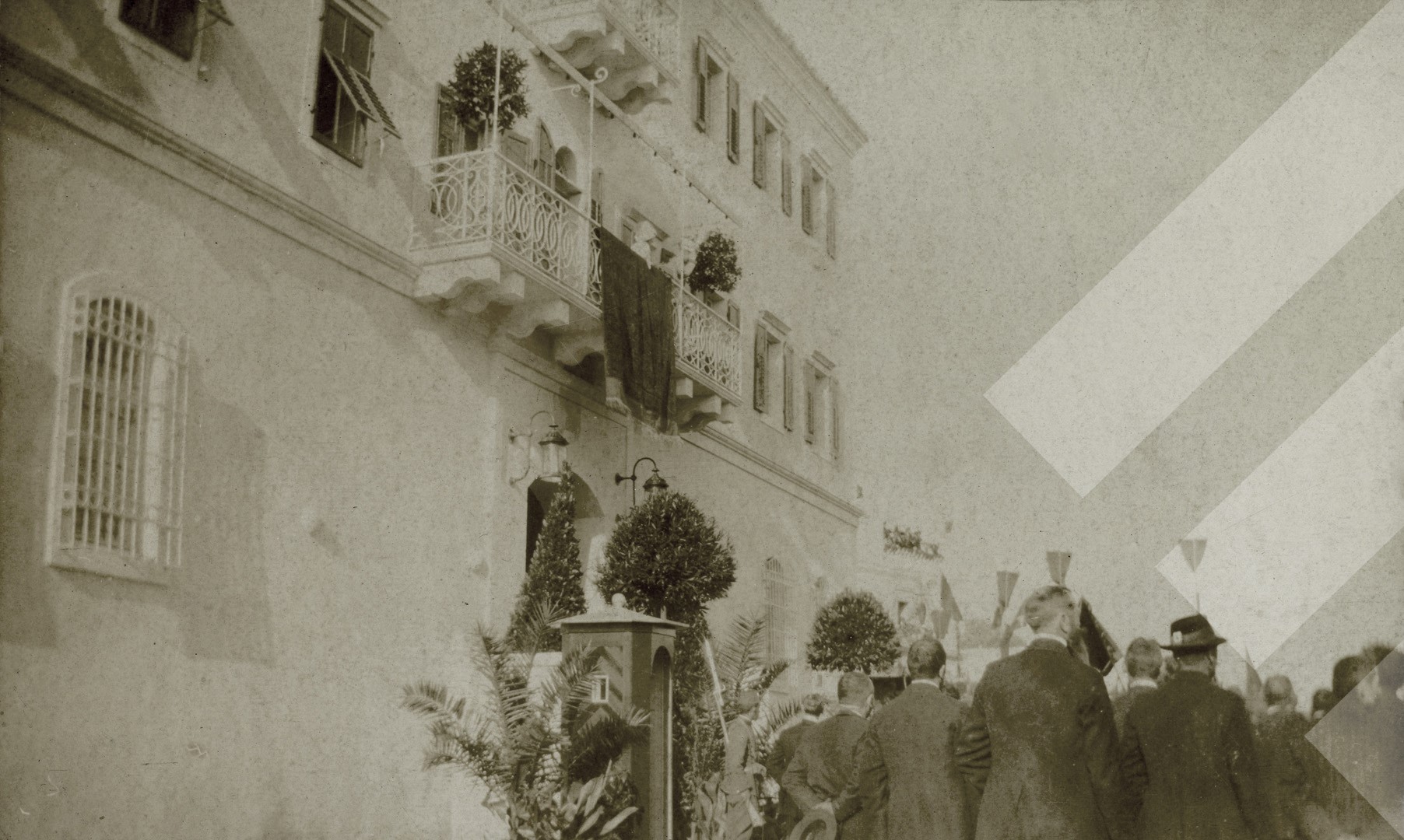 I panjohur 1914, Përshendetja e Princ Wilhelm Vidit nga pallati Mbretëror, Durrës, print në letër, 9 x 14 cm.