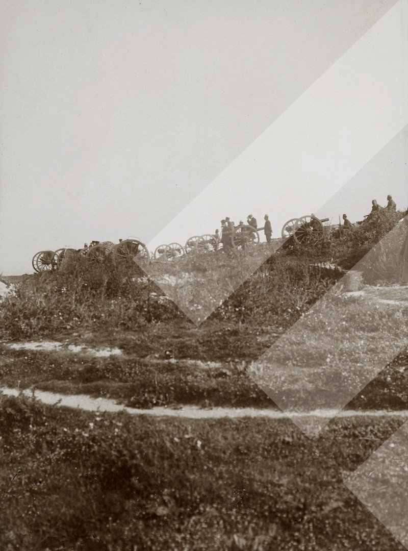 I panjohur, 1914, Princi Wilhelm Vid më 23 maj 1914 urdhëron një sulm me topa kundër kryengritësve të Shqipërisë së Mesme, në Shijak, print në letër, 8 x 11 cm.