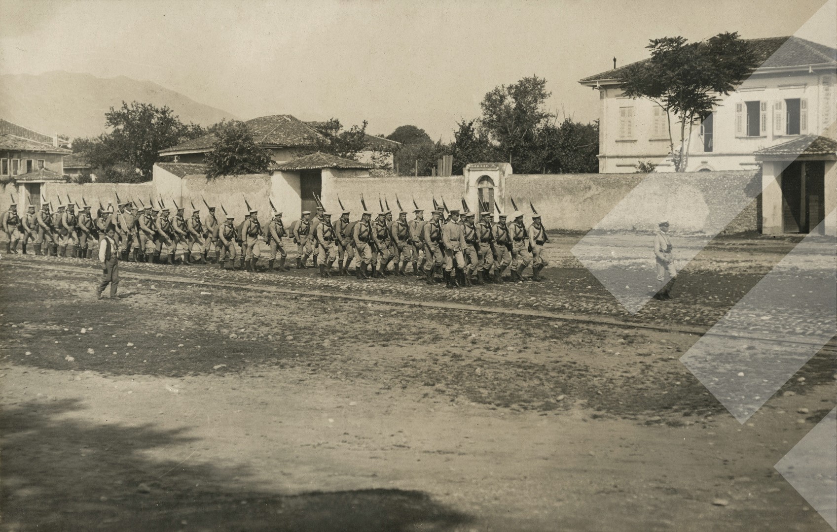 I panjohur 1913, Parakalimi i trupave të marinës gjermane në Shkodër, Print në letër, 9 x 14 cm.