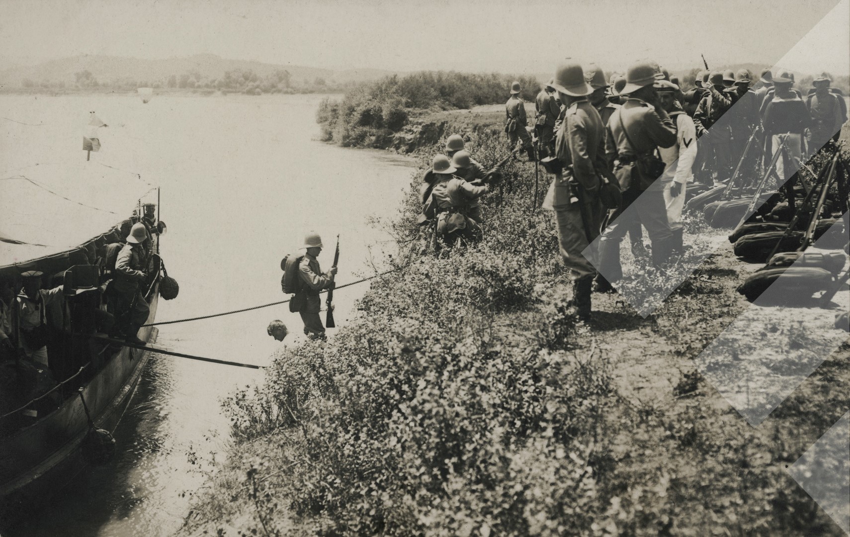 I panjohur 1913, Zbarkimi i trupave të marinës gjermane, pjesë e forcave ndërkombëtare në Shkodër, 14 Maj 1913, Print në letër, 9 x 14 cm.