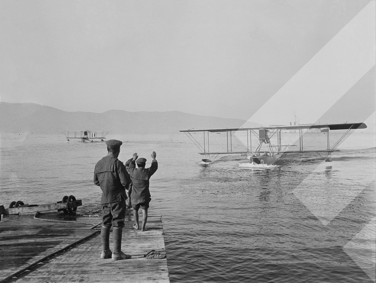 I panjohur, rreth 1916-1917, Parkimi i hidroplanëve në molin e Vlorës, negativ, 8.5 x 11.5 cm.