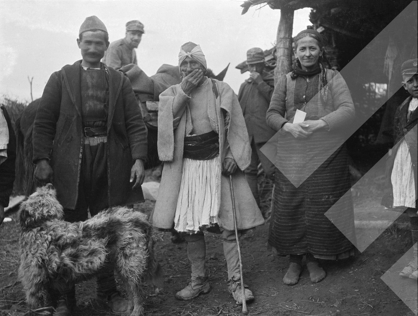 I panjohur, 1916, Fshatarë nga Labëria në zonën italiane të pushtimit, Vlorë, negativ, 8.5 x 11 cm.