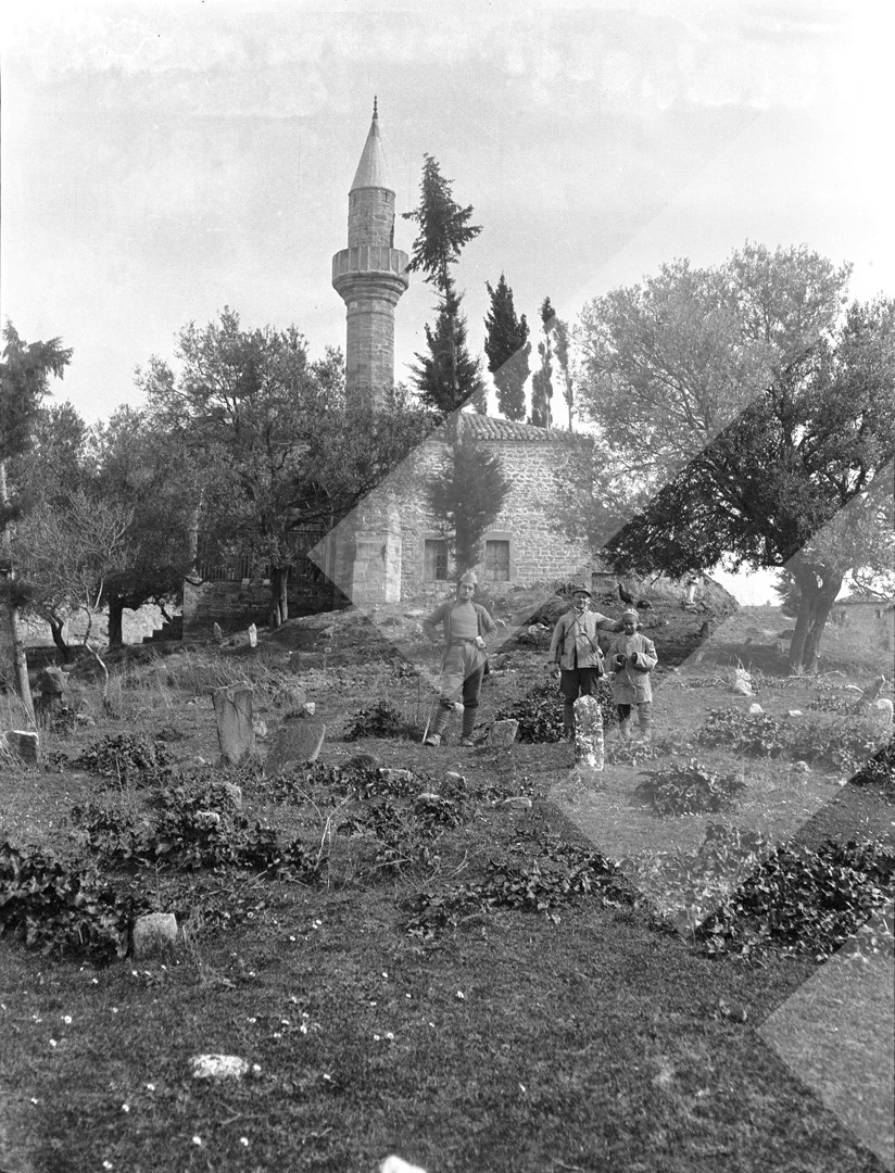 I panjohur, 1916, Ushtarë italianë dhe vendas në varrezat e xhamisë së fshatit Oshëtimë, negativ, 8.5 x 10.5 cm.