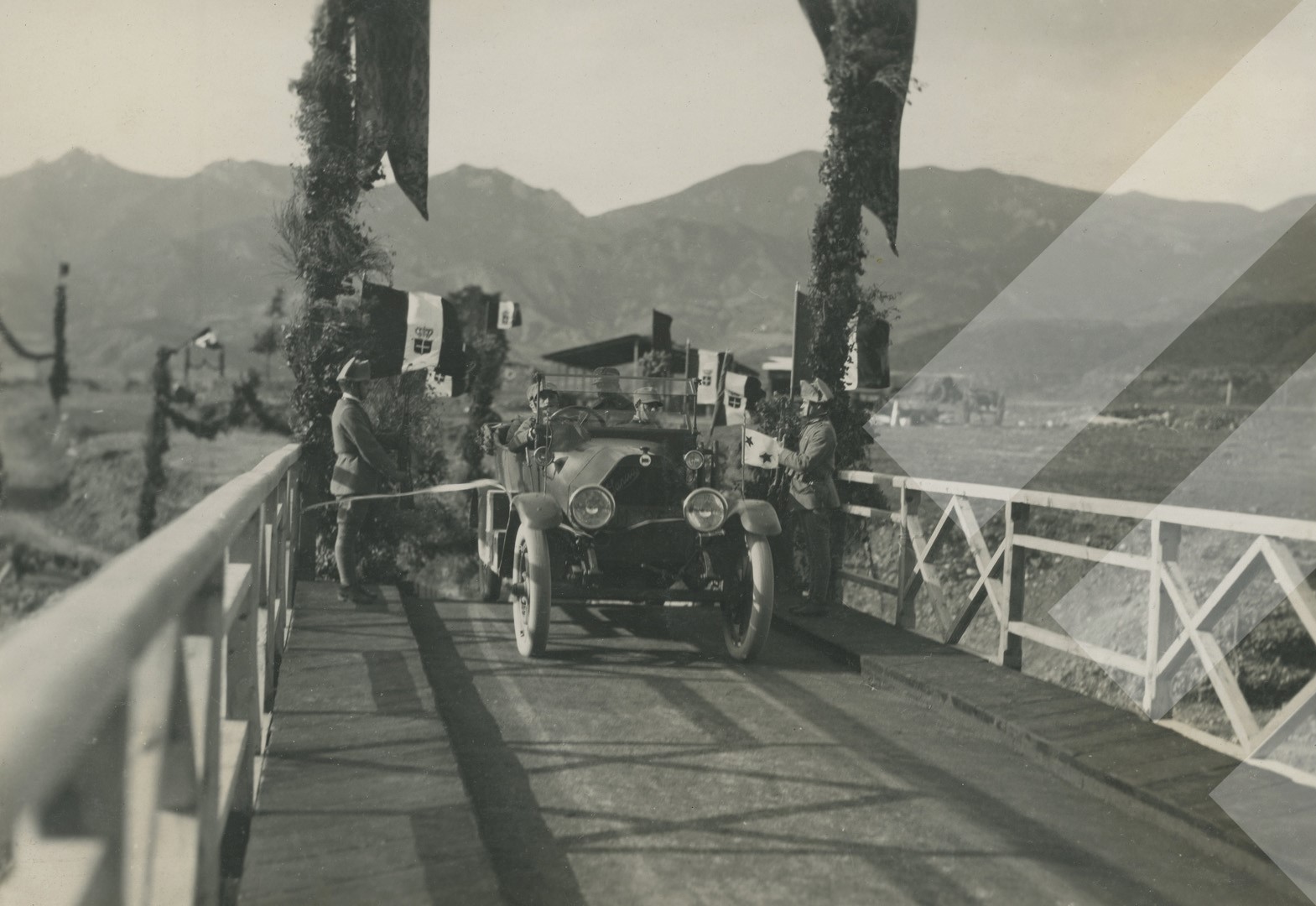 I panjohur, 1918, Gjenerali italian Giacinto Ferrero duke kaluar mbi urën në Përmet. 1 maj 1918, Print në letër, 12 x 16 cm.