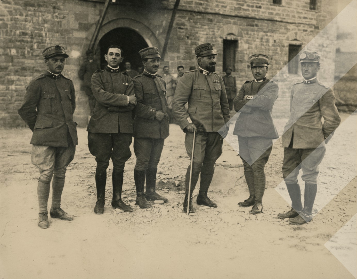I panjohur, Gjeneralmajor Roberto Brusi, komandant i brigadës "Tanaro" dalë në Hanin e Ballabanit me oficerë të tjerë, në korrik 1917, Print në letër, 14.5 x 11.5 cm.