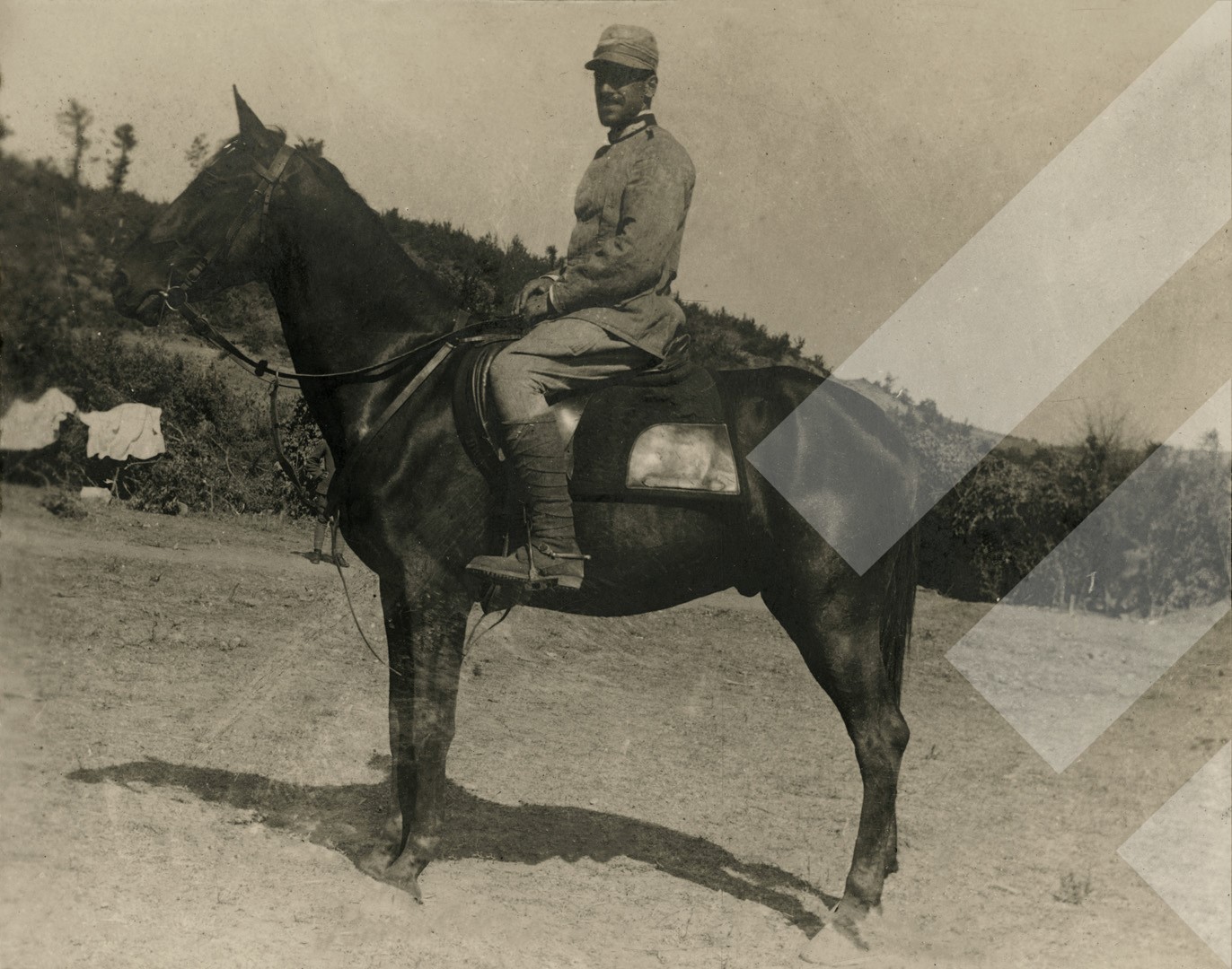 I panjohur , "", 1917-1918 , , Kapiteni Alfonso Resta mbi kalin e tij Lorenzo, , Print në letër , 10 x 8 cm