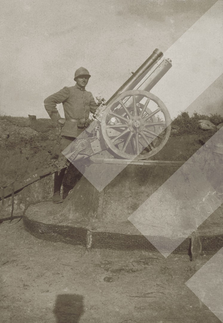 I panjohur , "", 1916-1917 , , Ushtar italian në Luftën I Botërore, duke pozuar pranë një topi, , Print në letër , 6 x 8 cm