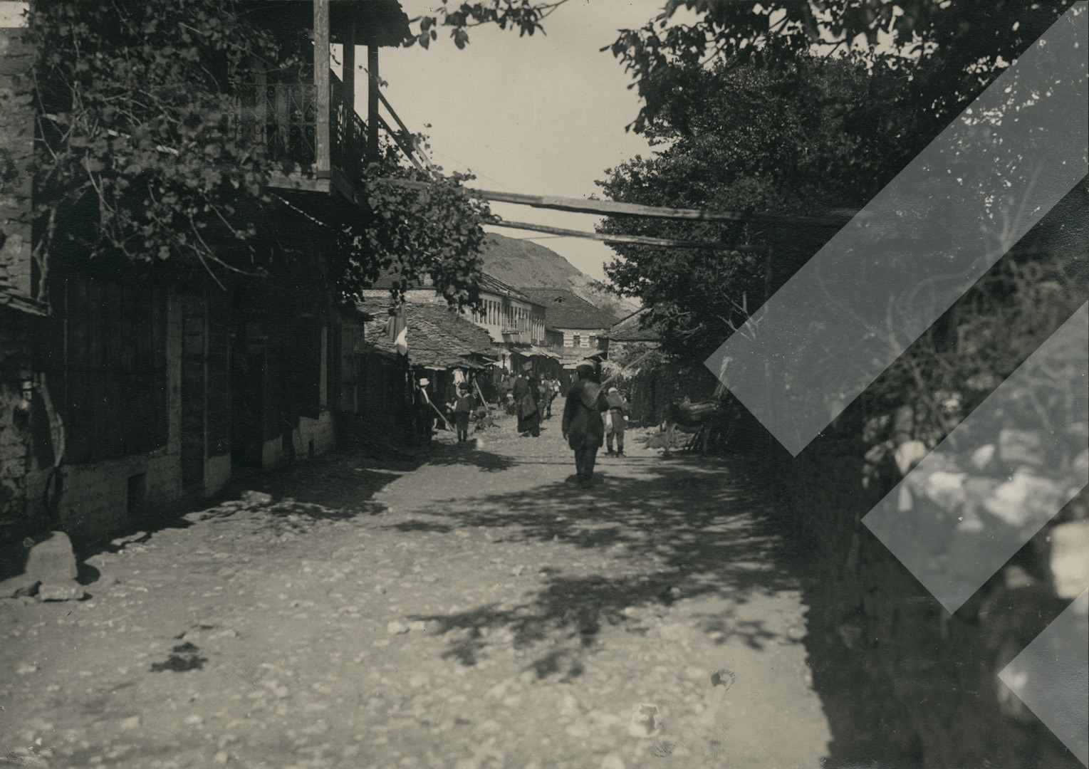I panjohur , "", 1917 , , Rruga kryesore hyrëse në qytetin e Përmetit, , Print në letër , 12 x 17 cm