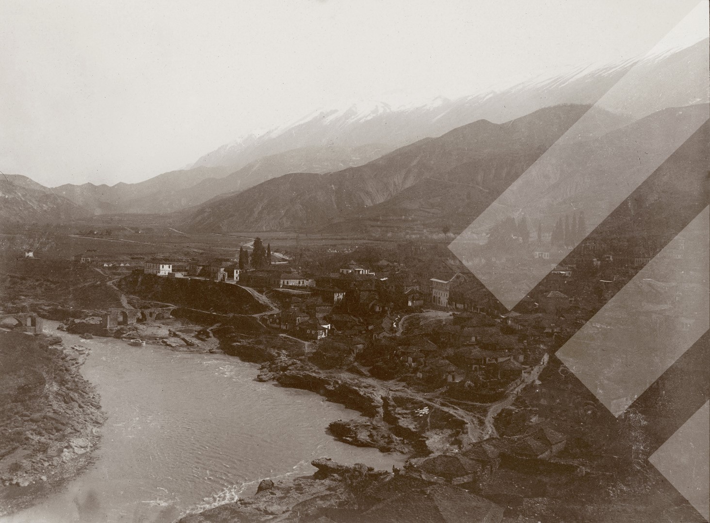 I panjohur , "", 1917 , , Pamje panoramike nga Përmeti. Në sfond mali i Nemërçkës, , Print në letër , 8.5 x 11 cm