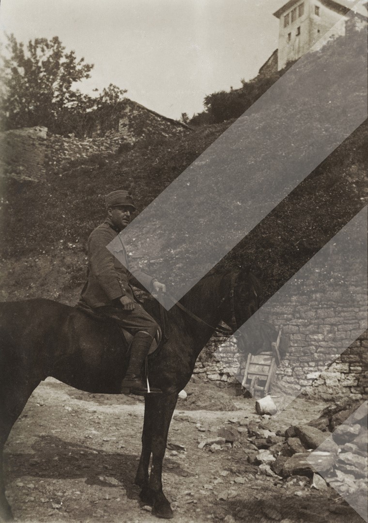 I panjohur , "", 1918 , , Oficer italian mbi kalin e tij, dalë në Gjirokastër, , Print në letër , 8 x 11 cm