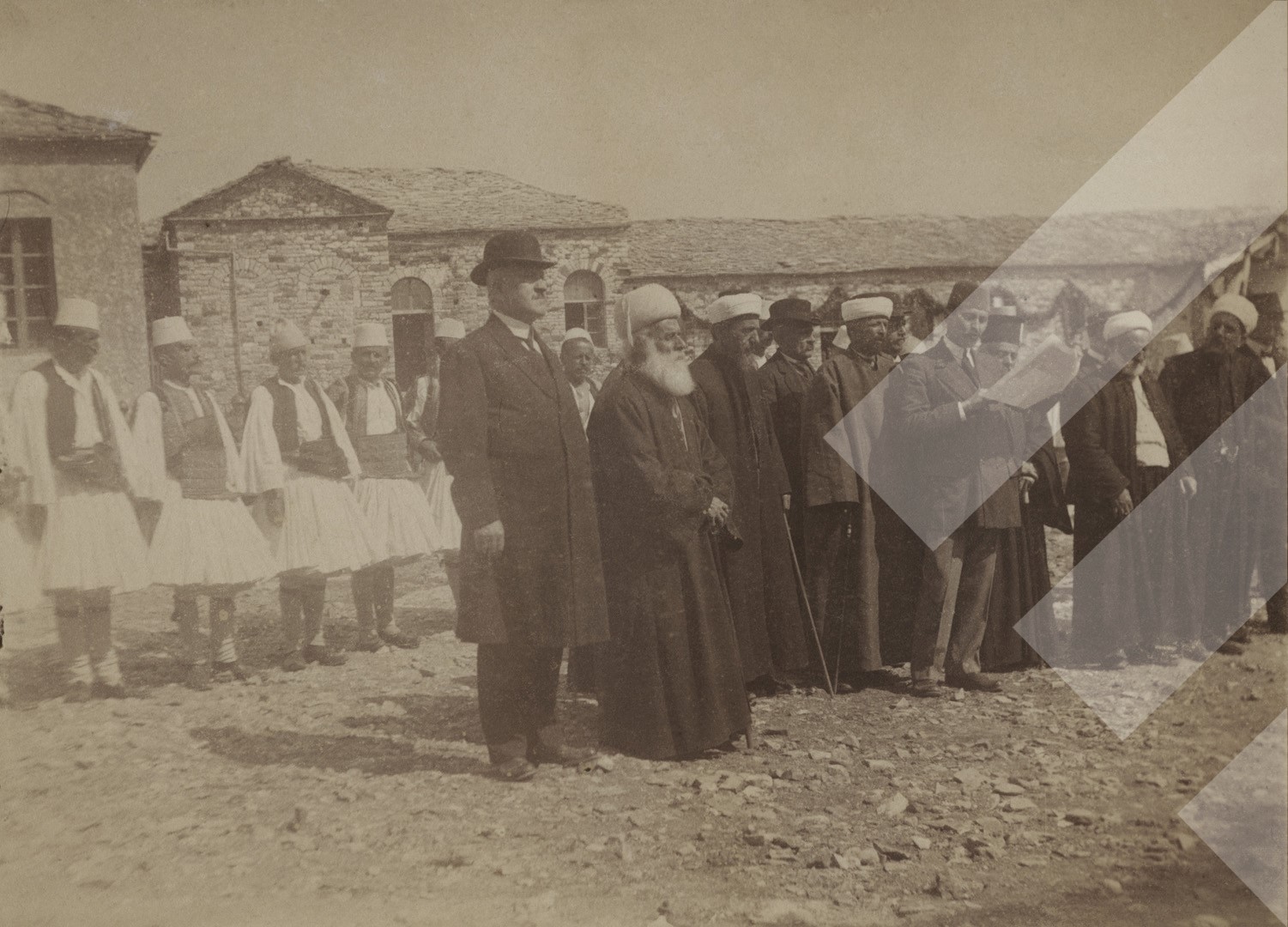 I panjohur, Paria e Gjirokastrës në ceremoninë e festimit të përvjetorit të parë të shpalljes së Pavarësisë së Shqipërisë nën protektoriatin italian, nga gjenerali Giacinto Ferrero. 3 qershor 1918, Print në letër, 8 x 11 cm.