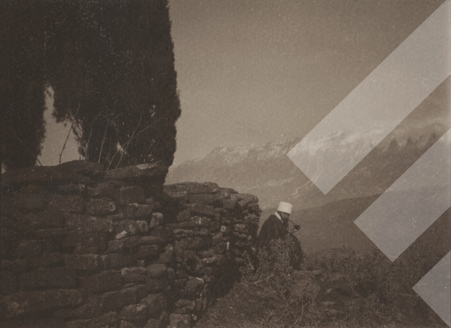 I panjohur , "", 1918 , , Dervish bektashi duke tymosur në murin e teqesë. Gjirokastër, , Print në letër , 8 x 11 cm