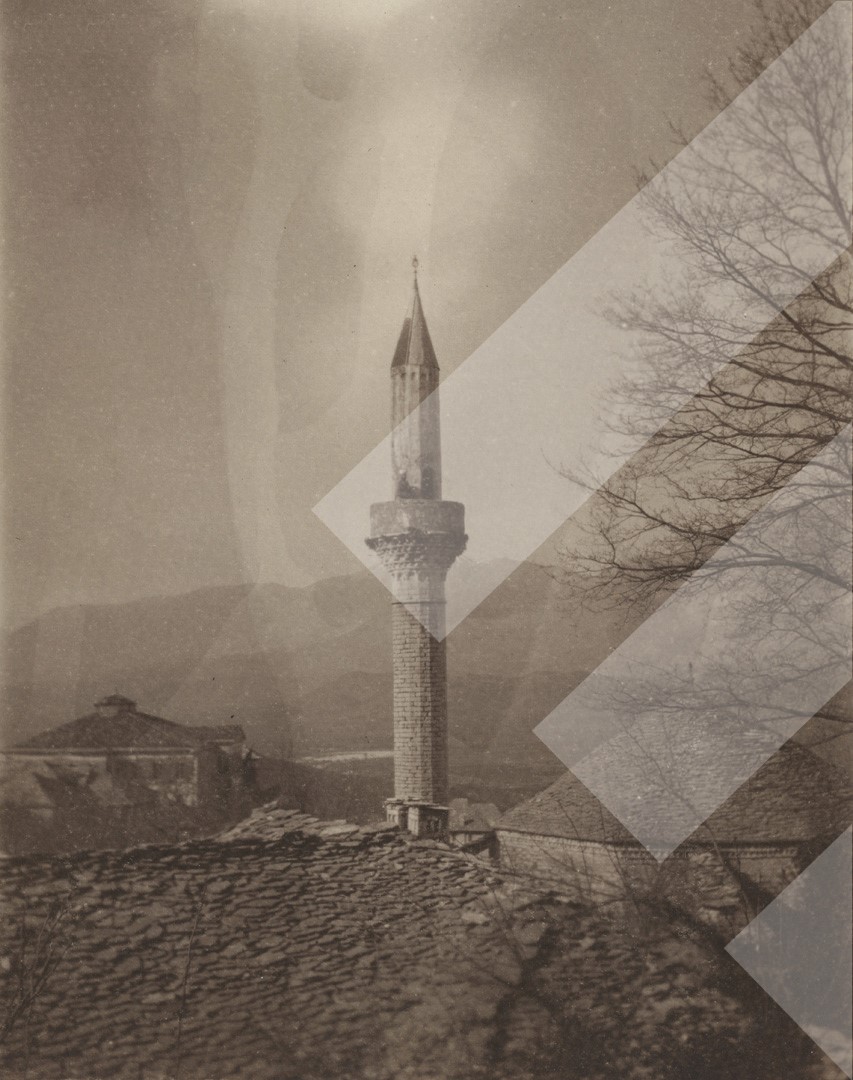 I panjohur , "", 1918 , , Minareja e një xhamie në Gjirokastër, , Print në letër , 8 x 10.5 cm
