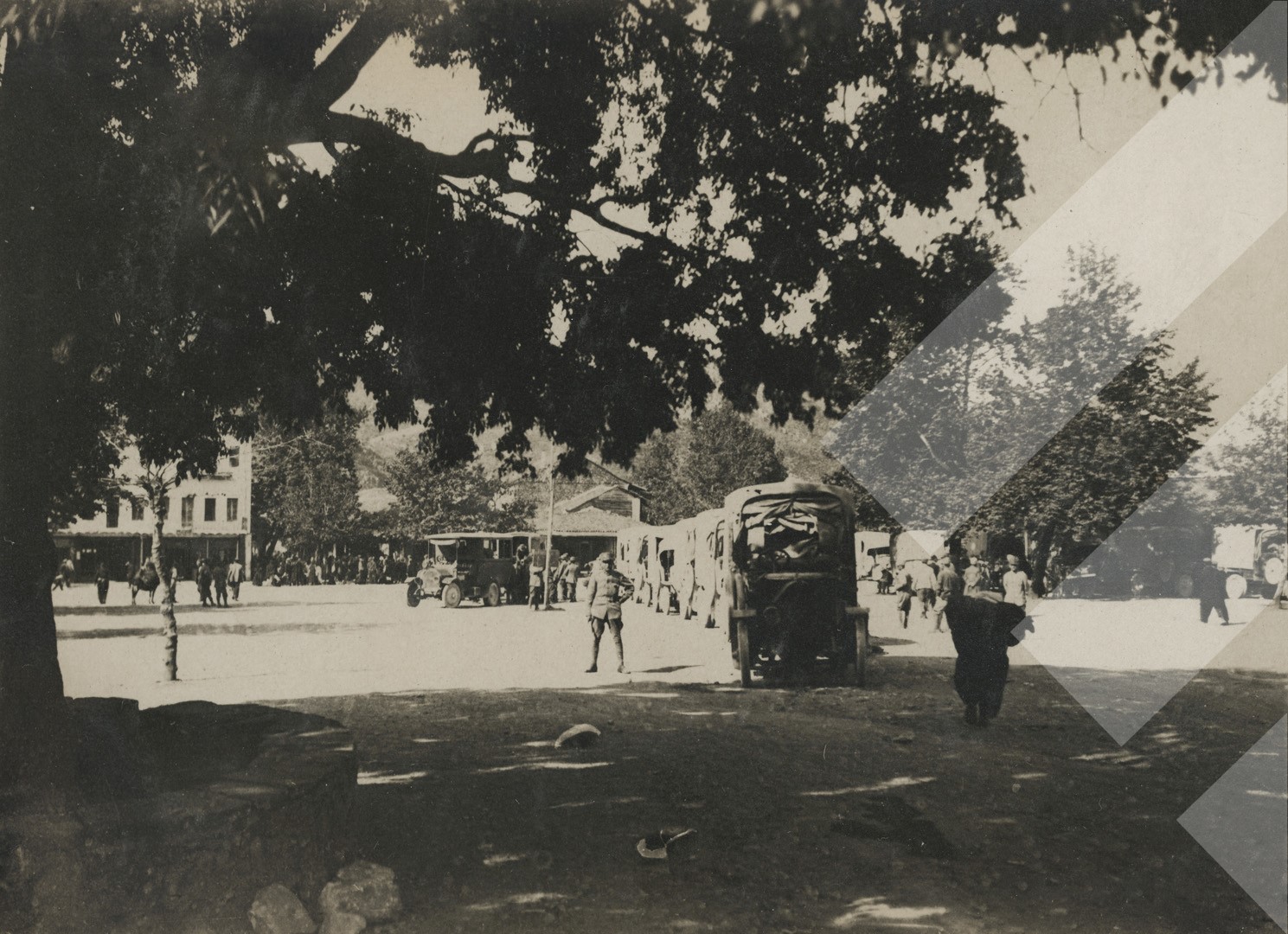 I panjohur , "", 1918 , , Autokolona e kamionëve italian në pushim, Delvinë, , Print në letër , 8.5 x 11 cm