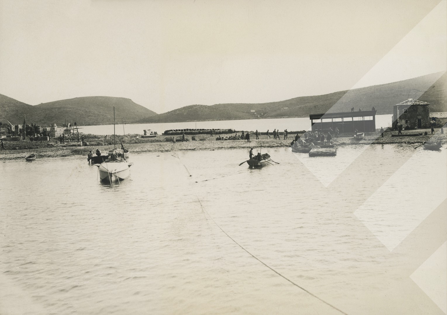 I panjohur, 1918, Porti dhe moli i Porto Palermos, majtas një nësi M.A.S (motorskafi i armatosur me silurë), Print në letër, 12 x 16.5 cm.