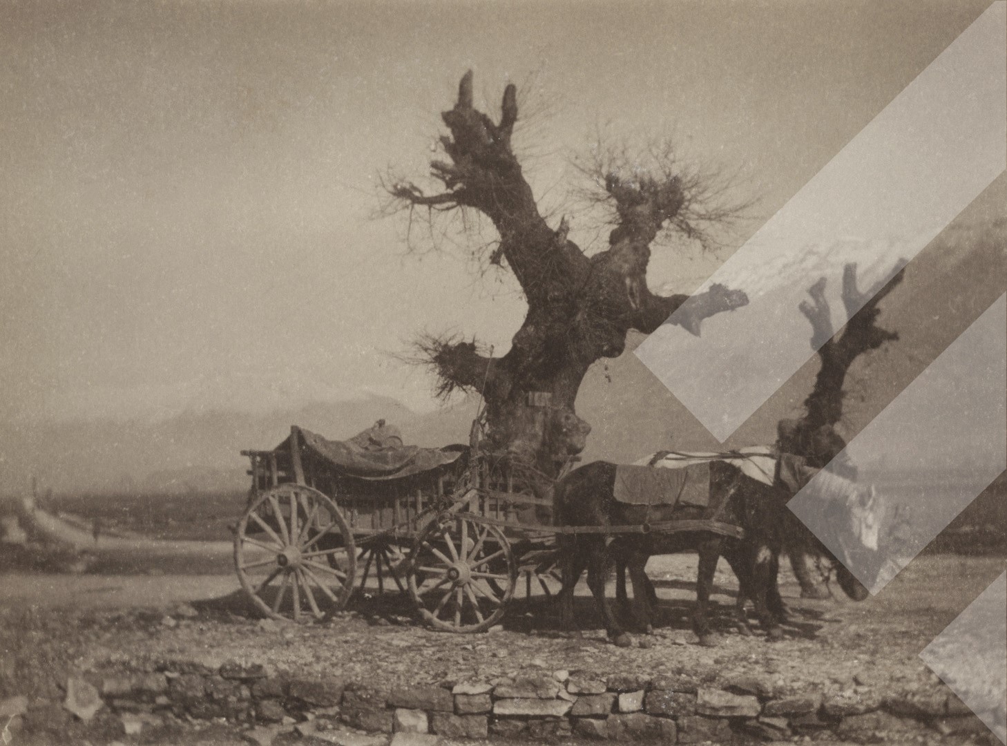 I panjohur , "", 1918 , , Shqiptarë me karvanin e qerreve, në rrugë për në Gjirokastër, , Print në letër , 8 x 10.5 cm