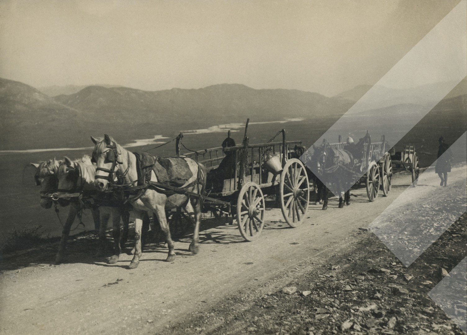 I panjohur , "", 1918 , , Shqiptarë me karvanin e qerreve, në rrugë për në Gjirokastër, , Print në letër , 8 x 11 cm