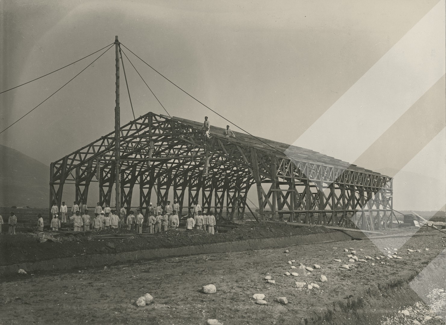 I panjohur , "", 1917 , , Hangar avionësh në ndërtim, , Print në letër , 16.5 x 22.5 cm