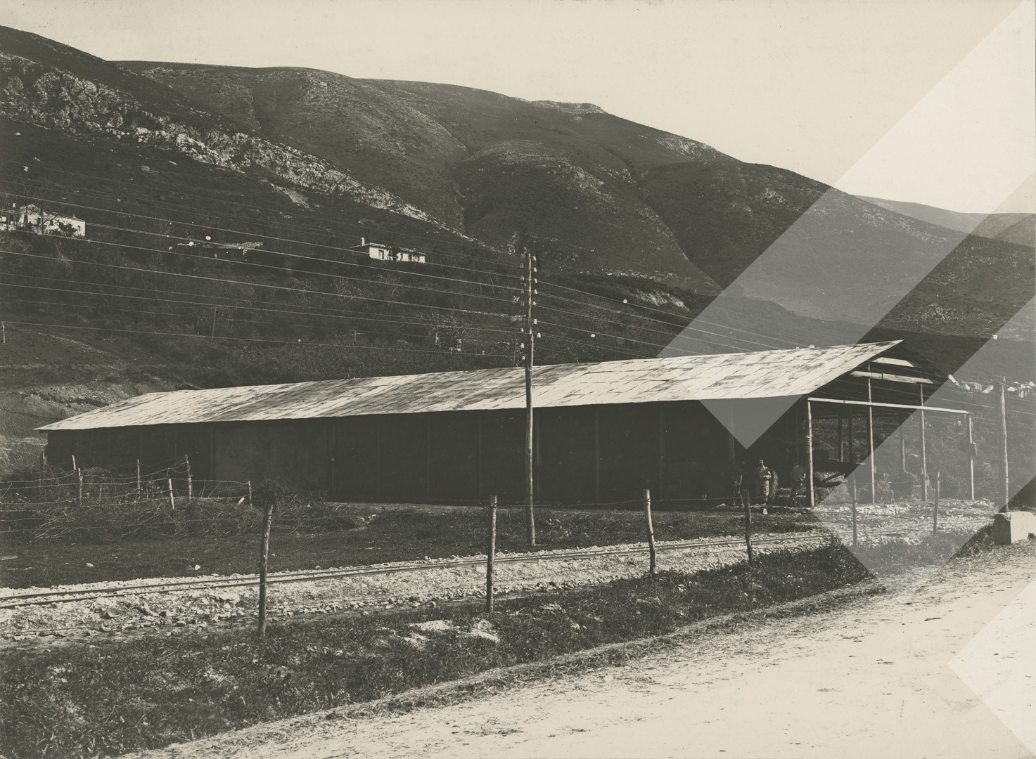 I panjohur , "", 1917 , , Kapanon, linjë dekovili dhe linjë telefonike në bregdetin e Radhimës, , Print në letër , 16.5 x 22.5 cm