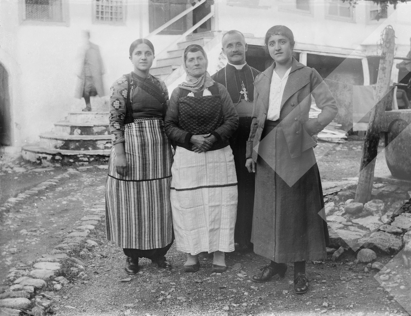 I panjohur, rreth 1915-1917, Imzot Luigj Bumçi me besimtarë, Shkodër, pllakë xhami, 9 x 12 cm.