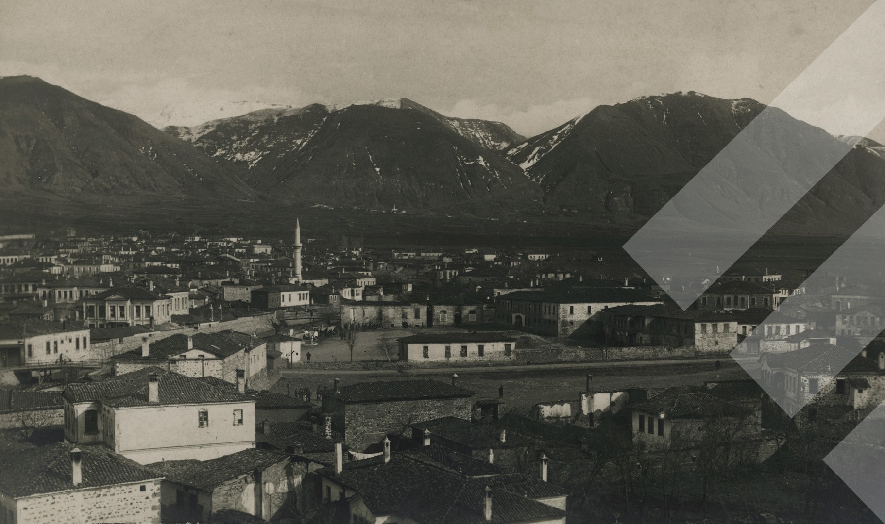 I panjohur , "", 1918 , , Pamje nga qyteti i Korçës, , Print në letër , 7.5 x 13 cm