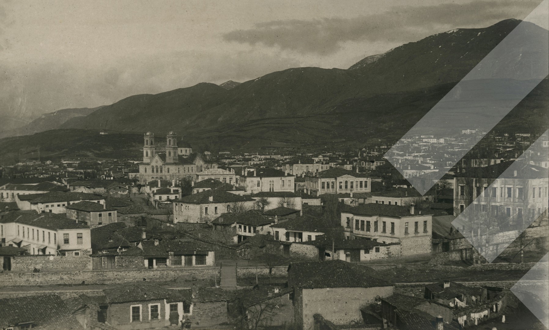 I panjohur , "", 1918 , , Pamje nga qyteti i Korçës, , Print në letër , 7.5 x 12.5 cm