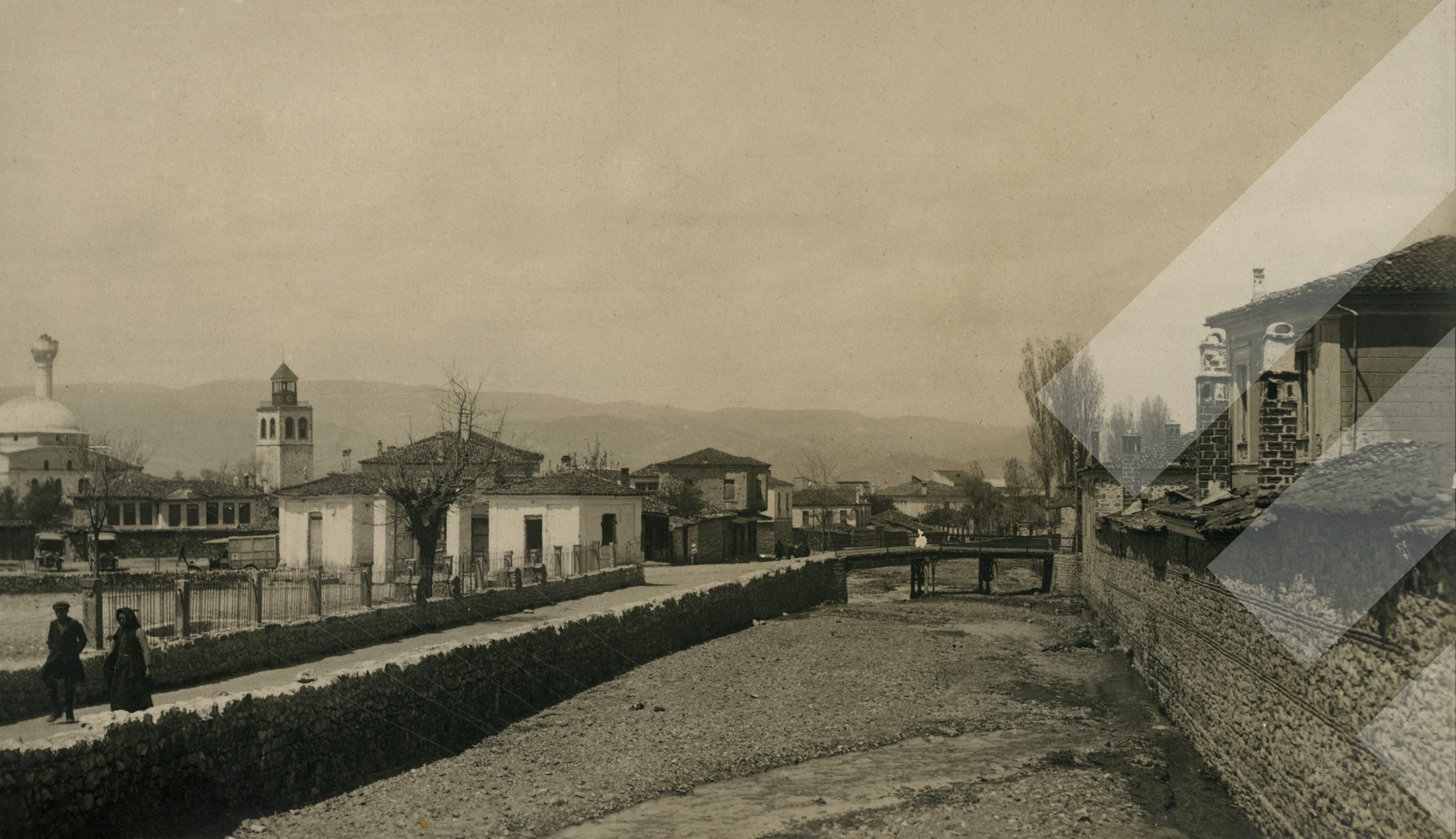 I panjohur , "", 1918 , , Pamje nga Korça, kanali përshkues i qytetit, , Print në letër , 7.5 x 13 cm