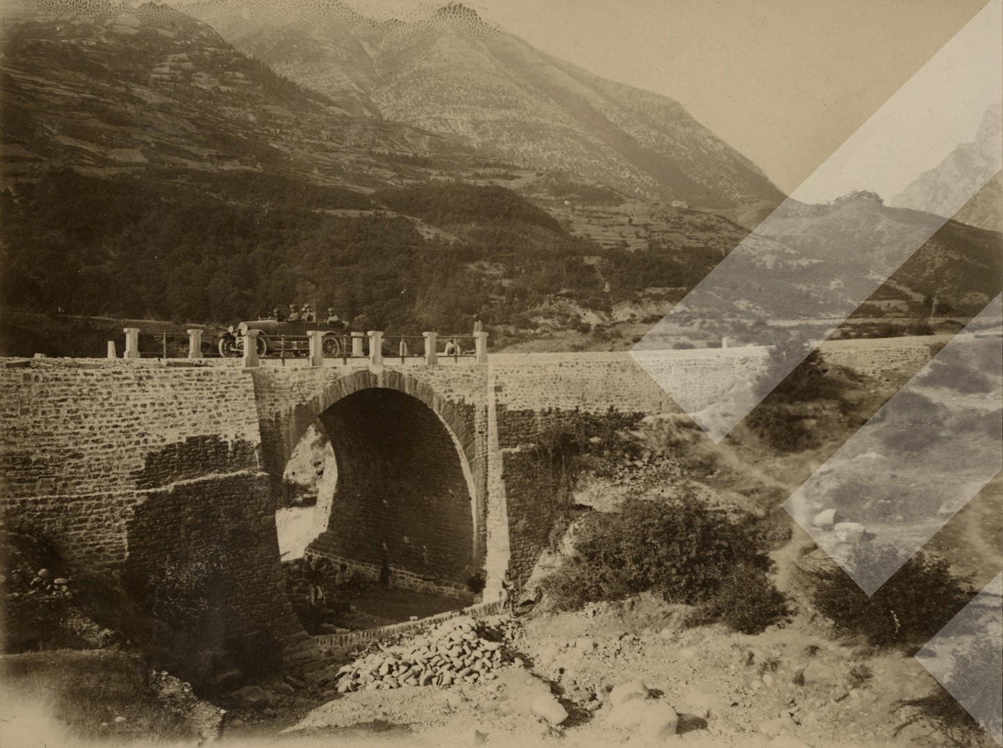 I panjohur , "", 1918 , , Automobil i trupave italiane mbi urën e përroit të Shtikës në rrugën Këlcyrë-Përmet, , Print në letër , 8.5 x 11 cm
