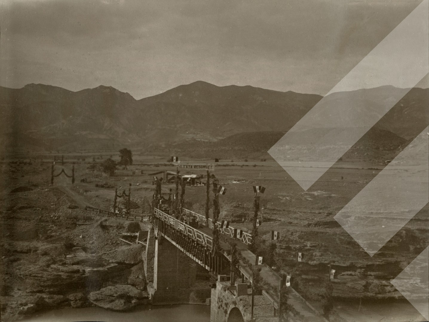 I panjohur , "", 1918 , , Makina e gjeneral Ferreros përshkon urën e rindërtuar të Përmetit, , Print në letër , 8.5 x 11 cm