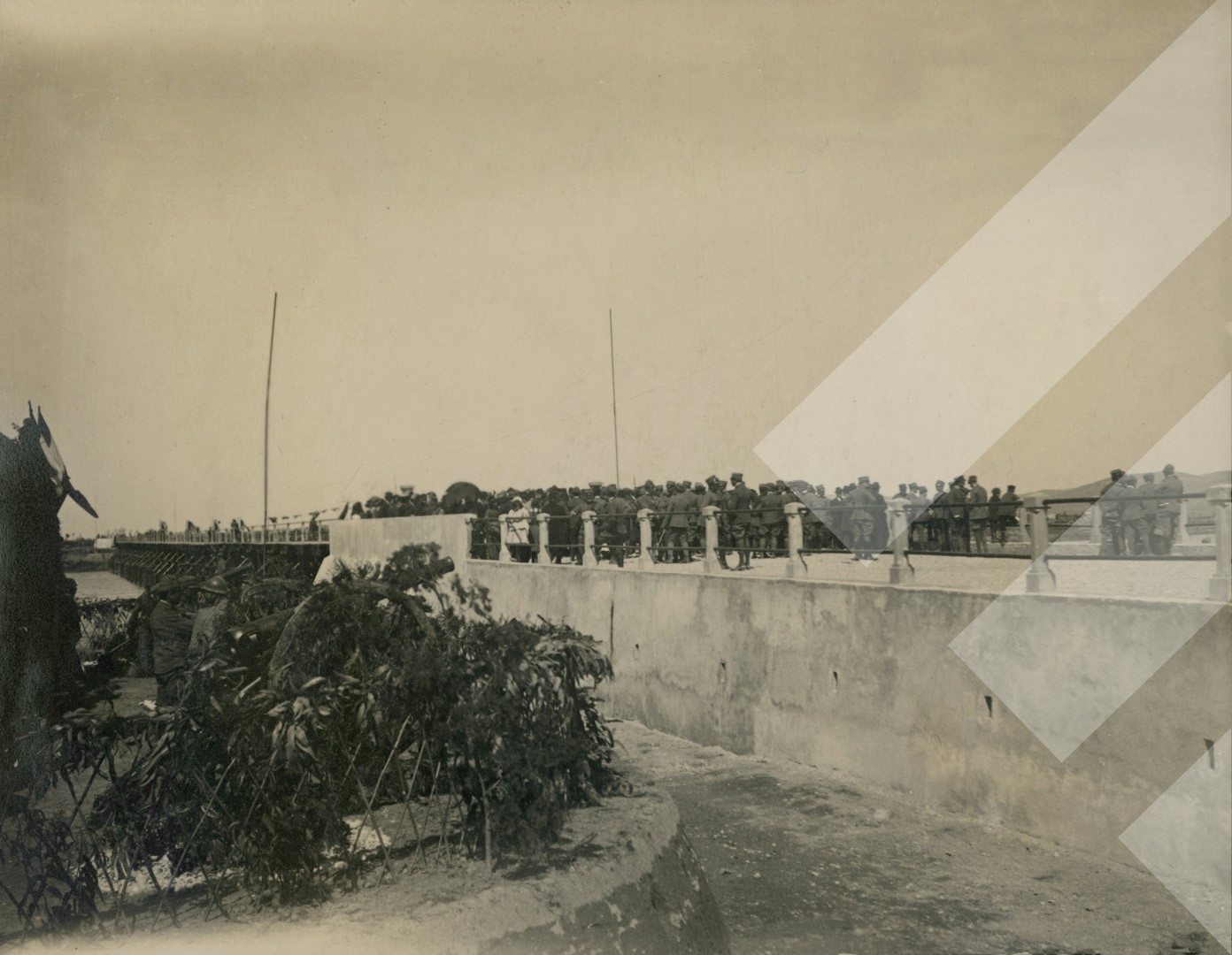 I panjohur , "", 1918 , , Inaugurimi i urës mbi palafite të Çiflik-Idrizit realizuar nga komanda e trupave italiane, , Print në letër , 8.5 x 11 cm