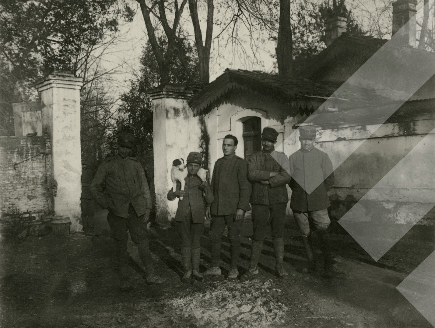I panjohur , "", 1919 , , Ushtarë italianë në oborrin e vendqëndrimit të tyre në Fier, , Print në letër , 8.5 x 11 cm
