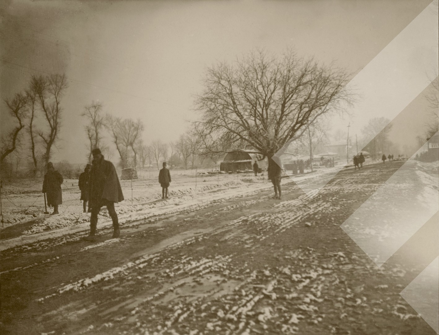I panjohur, rreth 1918-1919, Fieri në dëborë. Rruga Fier-Metalli, print në letër, 11.5 x 8.5 cm.