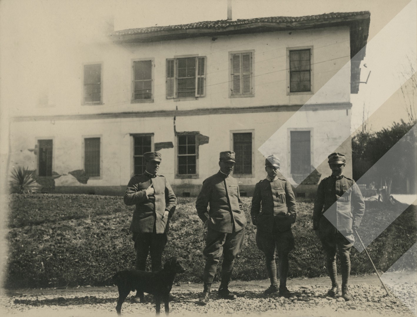 I panjohur , "", 1919 , , Oficerë italianë para shtëpisë së Sami Bej Vrionit, , Print në letër , 11.5 x 8.5 cm