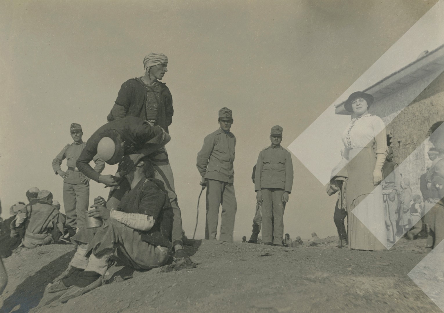 I panjohur, rreth 1916-1917, Berber i improvizuar nën sytë kureshtarë të austro-hungarezëve, print në letër, 9 x 14 cm.