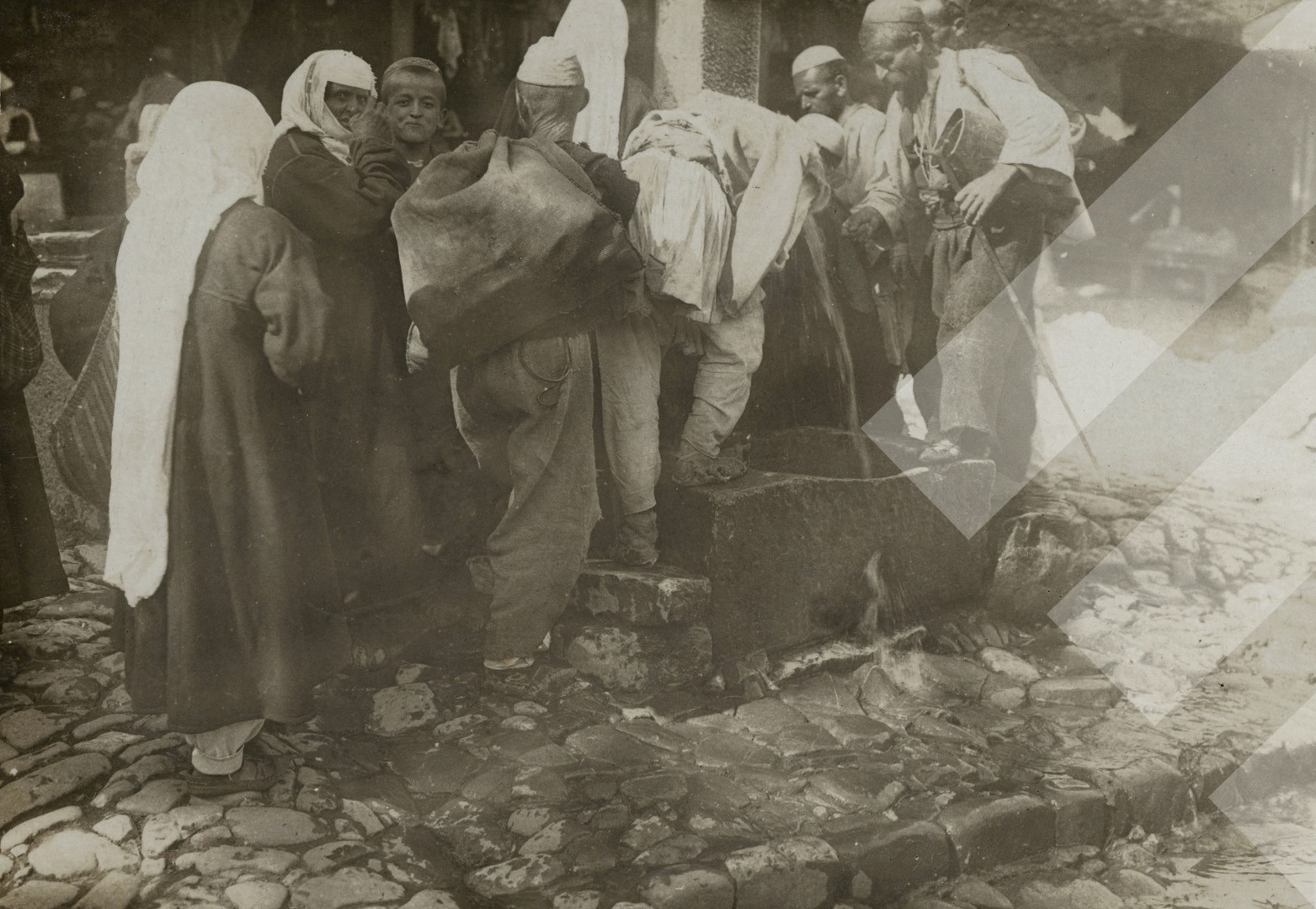 I panjohur, rreth 1916-1918, Rradhë te një çezmë në Tiranë, print në letër, 9 x 14 cm.